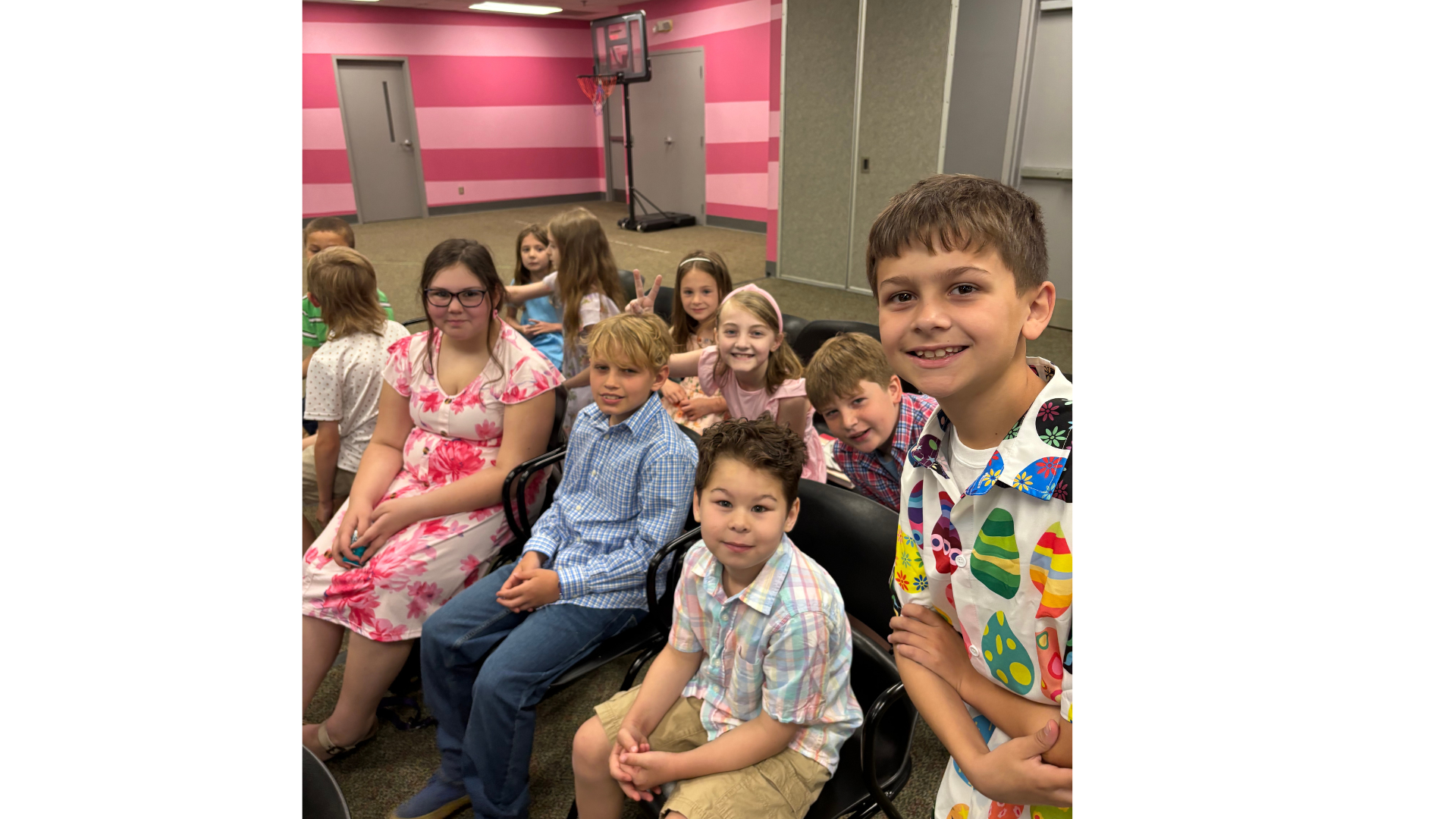 Children birth through kindergarten meet downstairs in the Ark and children in first through sixth grades meet upstairs in the KidZone.